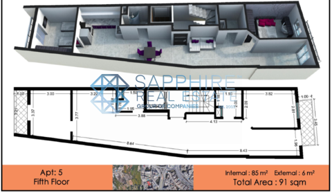 A Fifth floor Apartment served with lift comprises of open plan kitchen/living/dining area, 2 bedrooms, main bathroom and boxroom. Price in Shell form is EUR194,000, Finishing Package EUR39,000