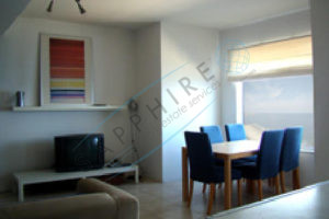 Bright and spacious, highly finished, fully furnished, air conditioned and equipped apartment served with lift enjoying open seaviews consisting of an open plan living/dining/kitchen, 2 double and 1 single bedroom, guest toilet, walk in wardrobe, ensuite shower, bathroom, front and back balconies and car space.